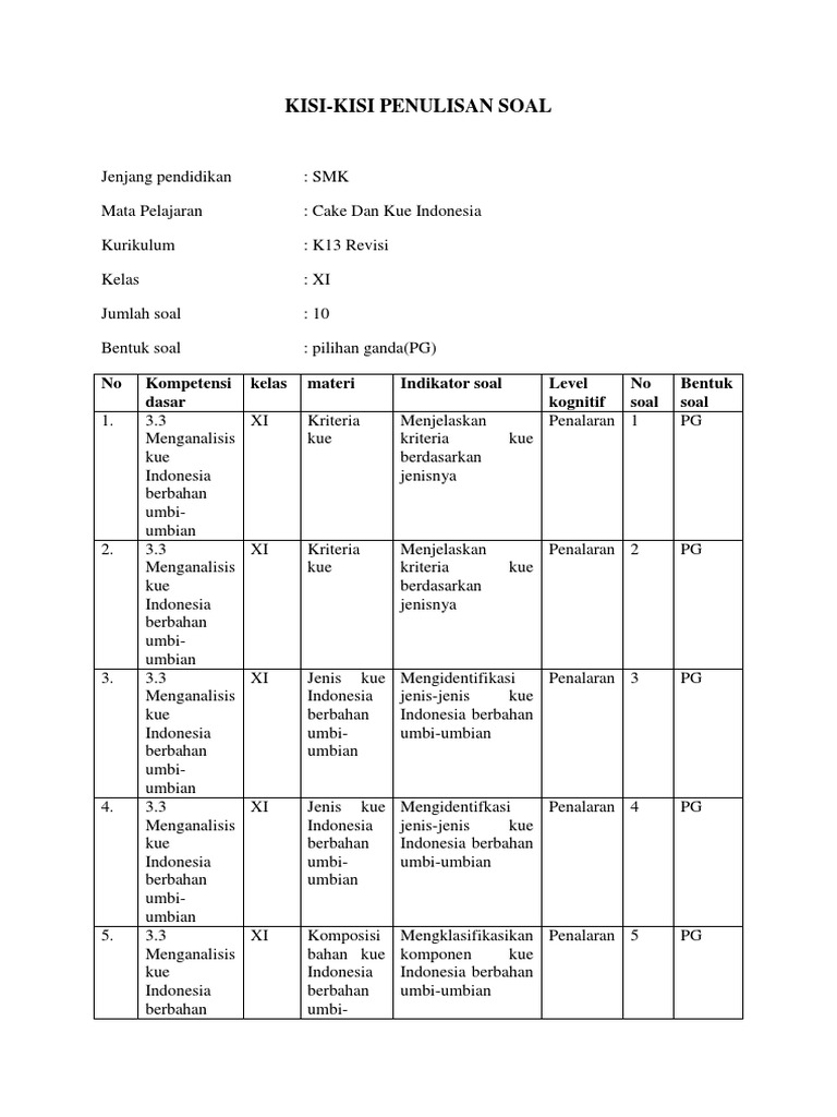 Contoh Soal Dan Jawaban Produk Cake Dan Kue Indonesia Kemendikbud from lh5.googleusercontent.com Soal pilihan ganda kue indonesia beserta jawabannya. Maybe you would like to learn more about one of these? We did not find results for: Check spelling or type a new query.