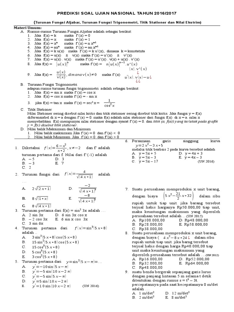 Kumpulan Soal Un Materi Turunan Jawabanku Id from i0.wp.com We did not find results for: Maybe you would like to learn more about one of these? Check spelling or type a new query. Soal un tentang aplikasi turunan.